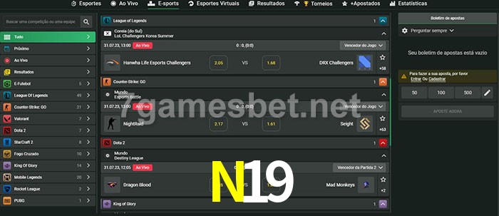 A aposta N19 oferece aos jogadores a experiência mais conveniente de apostas em eSports!